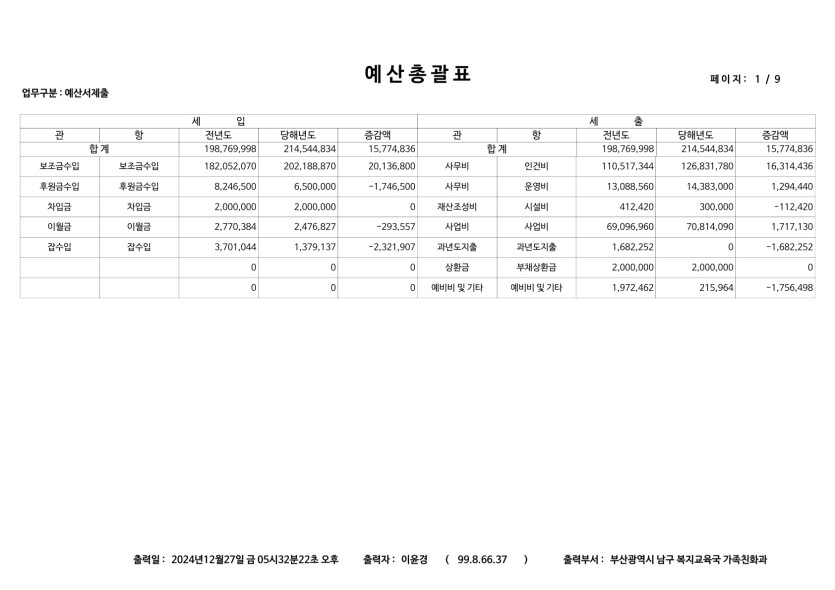 꿈샘지역아동센터 2025년 세입, 세출 예산(안)을 공고합니다. 페이지 정보 최고관리자 25-01-06 16:42 view977 Comment0 관련링크 ← previous next → 목록 본문 꿈샘지역아동센터 2025년 세입, 세출 예산(안)을 공고합니다. 페이스북 공유 트위터 공유 구글+ 공유 댓글목록 등록된 댓글이 없습니다. ← previous next → 목록