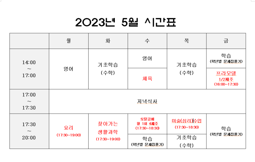 2023년 5월 시간표 안내 페이지 정보 최고관리자 23-05-03 17:47 view1,044 Comment0 관련링크 ← previous next → 목록 본문 5월 5일 (금) 어린이날 과 5월 29일(월) 대체공휴일은 휴원합니다. 페이스북 공유 트위터 공유 구글+ 공유 댓글목록 등록된 댓글이 없습니다. ← previous next → 목록